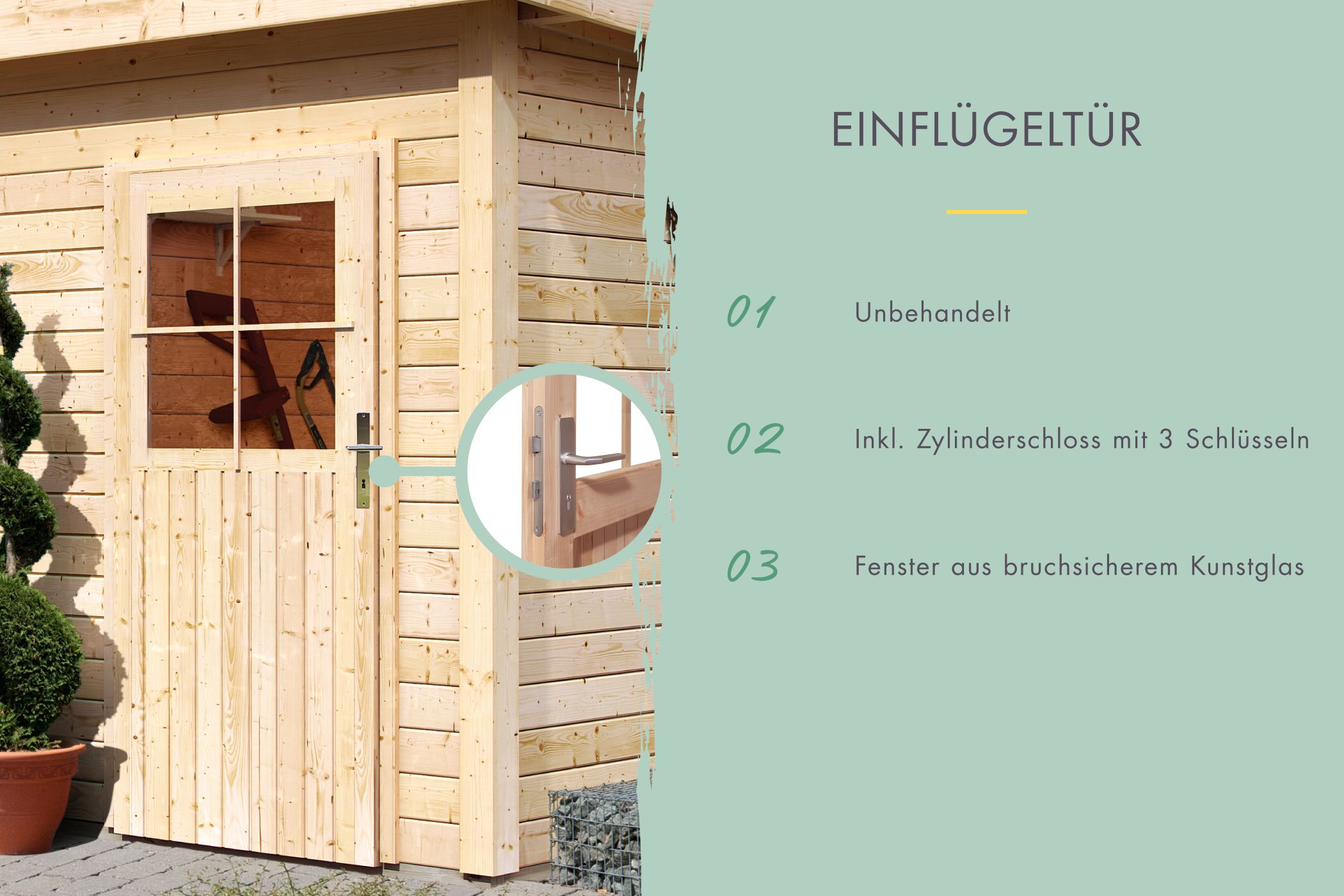 - Frei positionierbare Einflügeltür mit Lichtausschnitt und Zylinderschloss