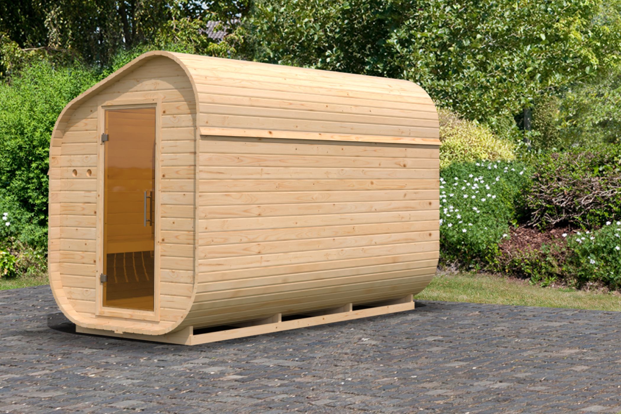 Karibu "Fasssauna asymmetrisch 3" 4 Personen ohne Ofen