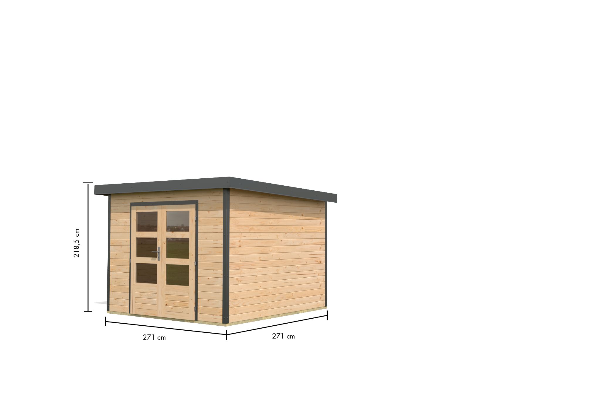 Hinweis: Alle unsere Hybridhäuser (inklusive diesem Produkt) werden in jeglicher Konfiguration mit einem anthrazitfarbenem Trapezblechdach geliefert!