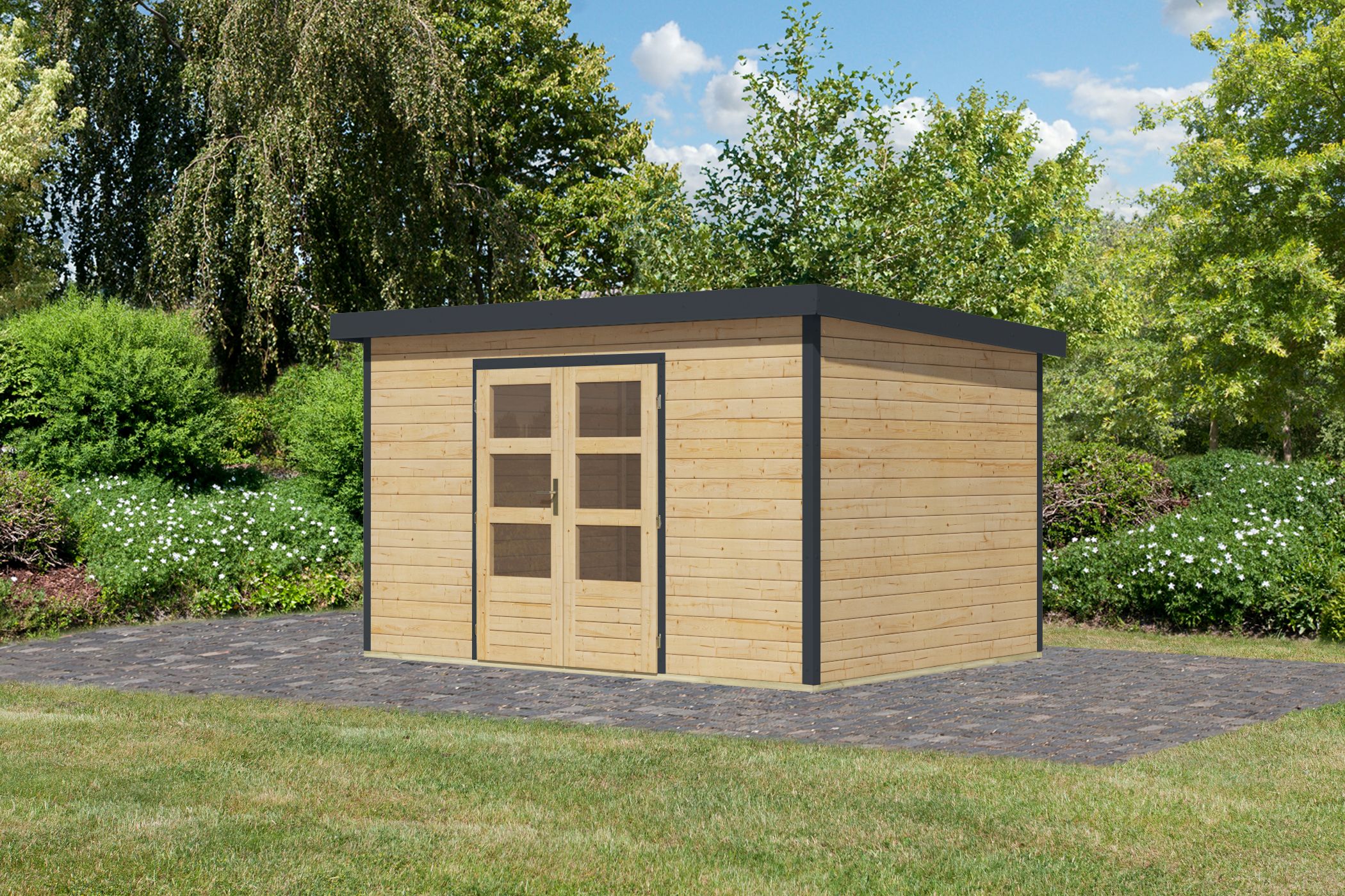 Karibu Gartenhaus Holz & Metall “Pluto 7” Pultdach modern in Natur