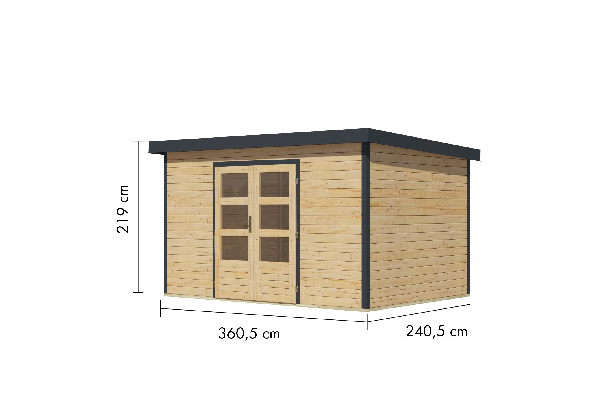 Hinweis: Alle unsere Hybridhäuser (inklusive diesem Produkt) werden in jeglicher Konfiguration mit einem anthrazitfarbenem Trapezblechdach geliefert!