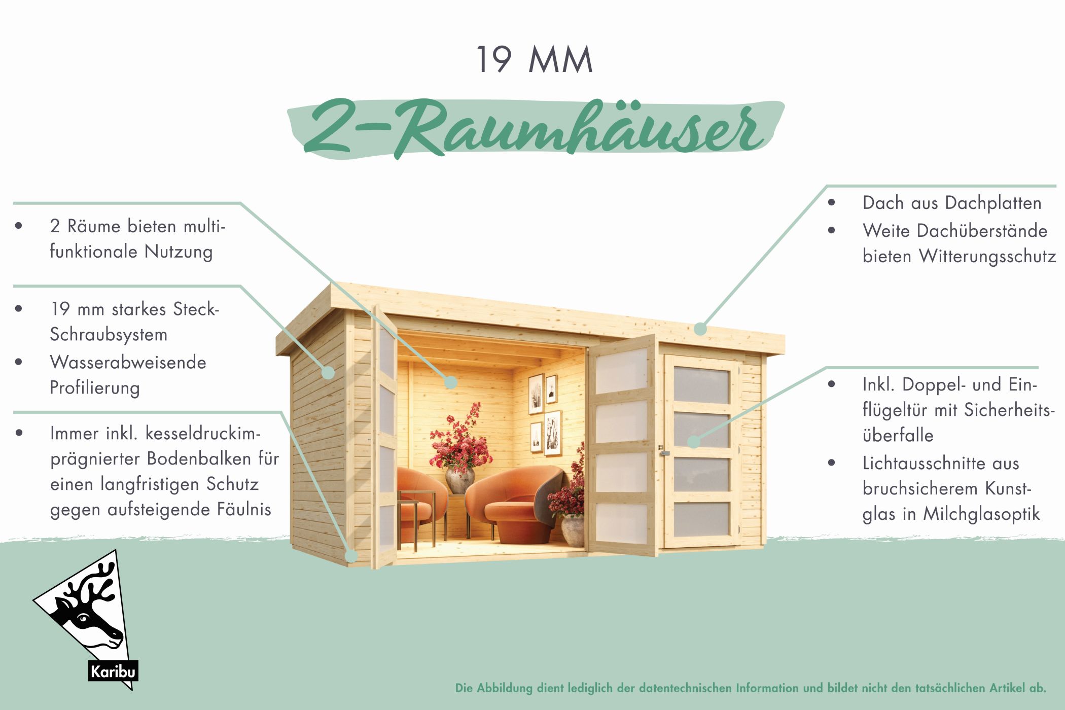 Dies hängt davon ab, für welche Holzfarbe beziehungsweise Variante Du Dich entschieden hast. Nutze unseren Infoartikel als Orientierungshilfe für naturbelassene Produkte, in dem wir praktische Tipps zum Streichen des Gartenhauses für Dich zusammengestellt haben. Entscheidest Du Dich für eine vorbehandelte Variante, profitierst Du automatisch von unserem Karibu Farbsystem.