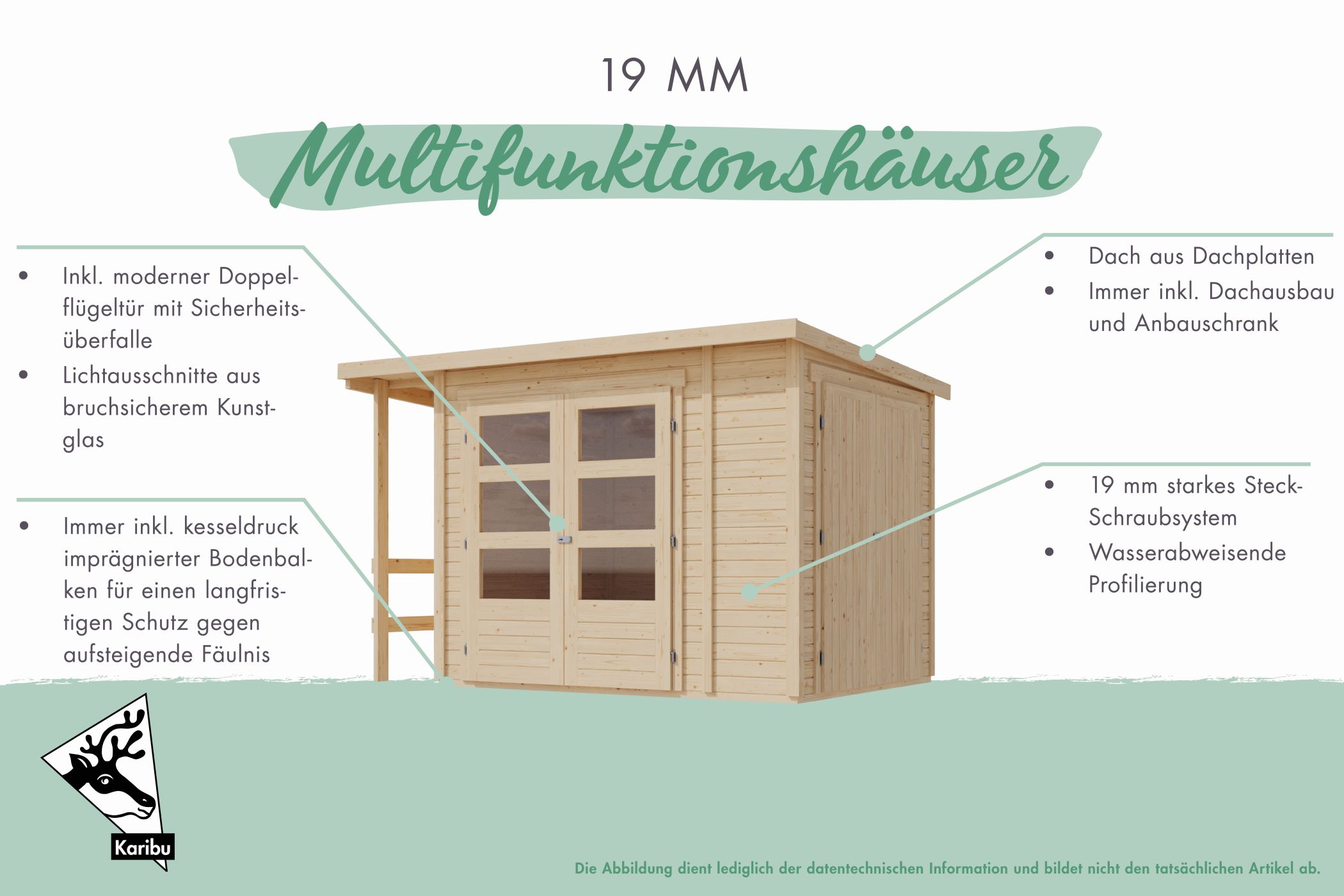 Karibu Gerätehaus “Multifunktionshaus Pultdach 19mm” Pultdach modern aus Holz in Natur