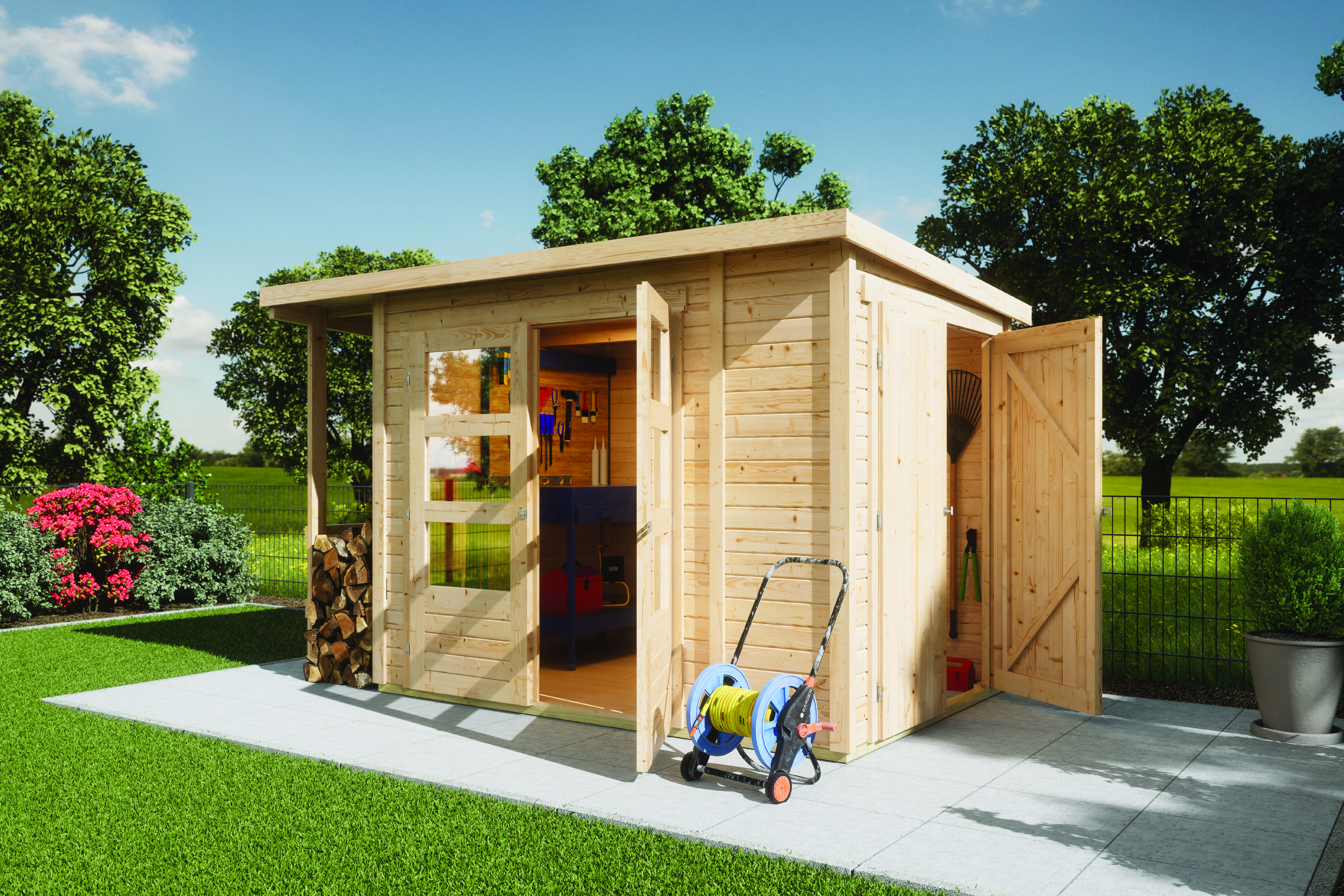 - Gartenhaus aus hochwertiger nordischer Fichte mit wasserabweisender Profilierung