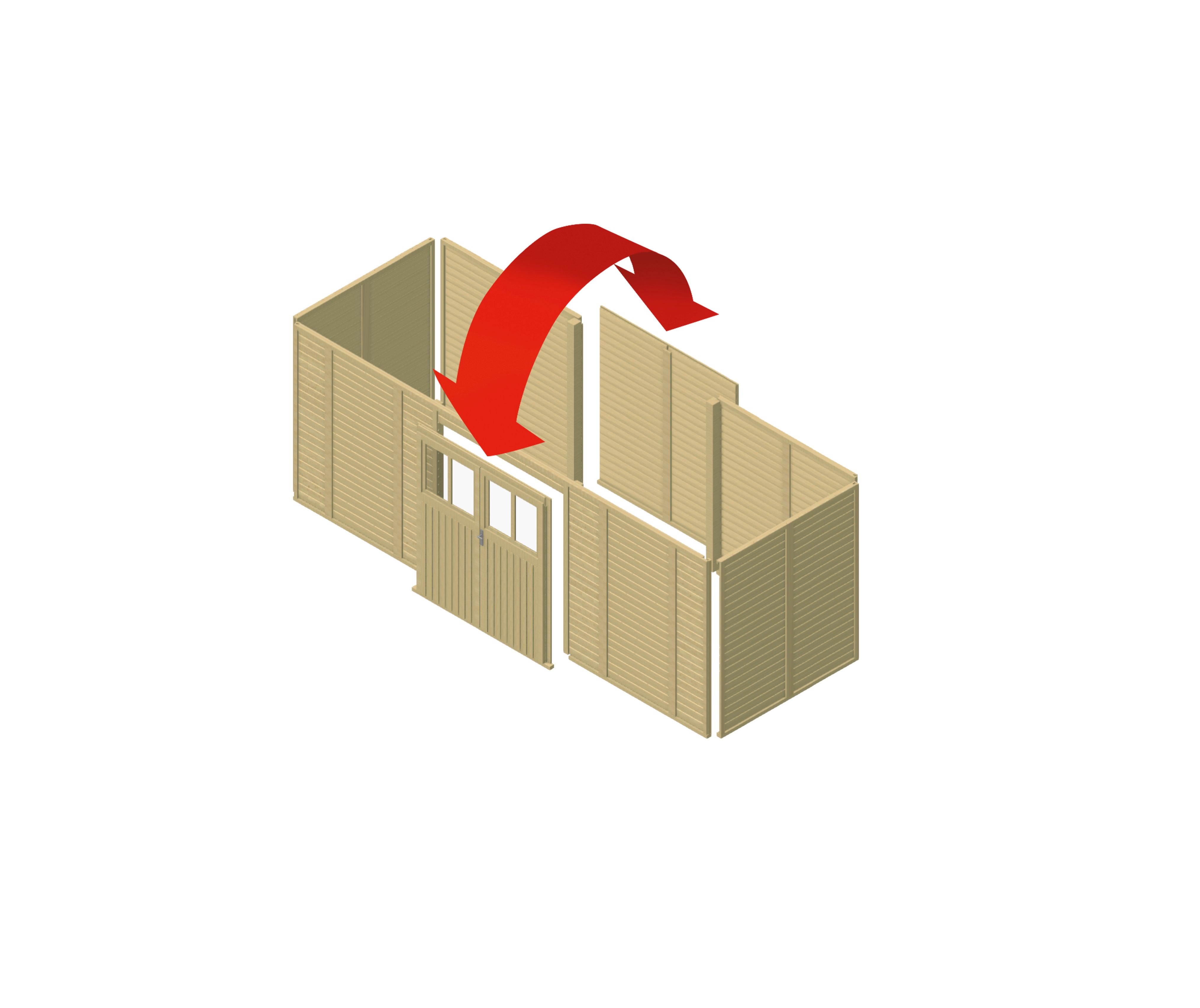 Der Geräteraum für unsere Doppelcarports besteht aus kesseldruckimprägnierten Holz. Er besteht aus 19mm Softline-Profilen zum Einbau zwischen den Pfosten. Die Tür ist frei positionierbar.