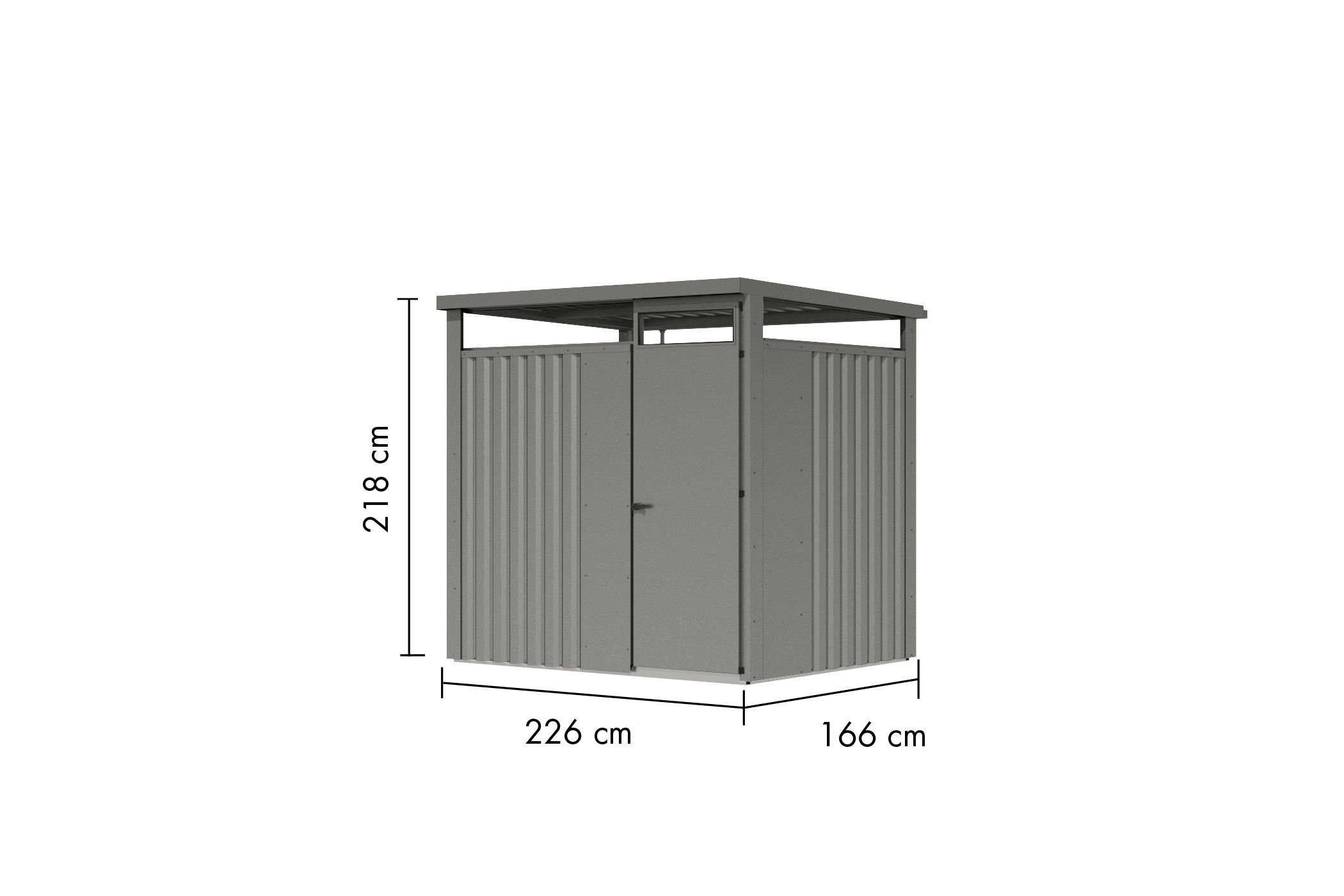 Karibu kleines Gerätehaus aus Metall “Østen 1,5 / Lagerabverkauf” Flachdach in Graualuminium - Abverkauf
