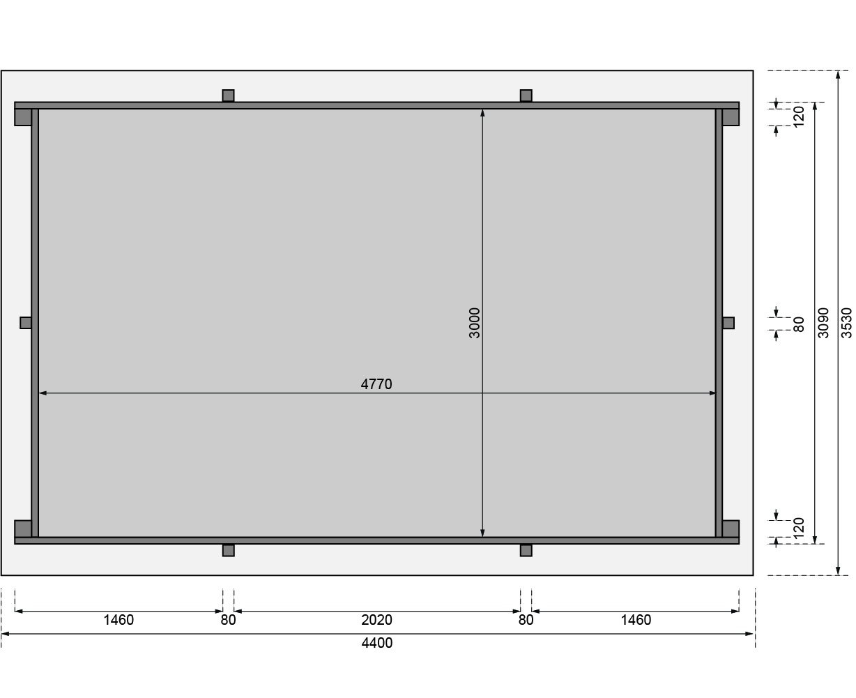 Hinweis: Die Stahlträger im Lieferumfang müssen zwingend nach Anleitung und bei Erstellung des Fundamentes mit einbetoniert werden, um einen stabilen Halt zu gewährleisten.