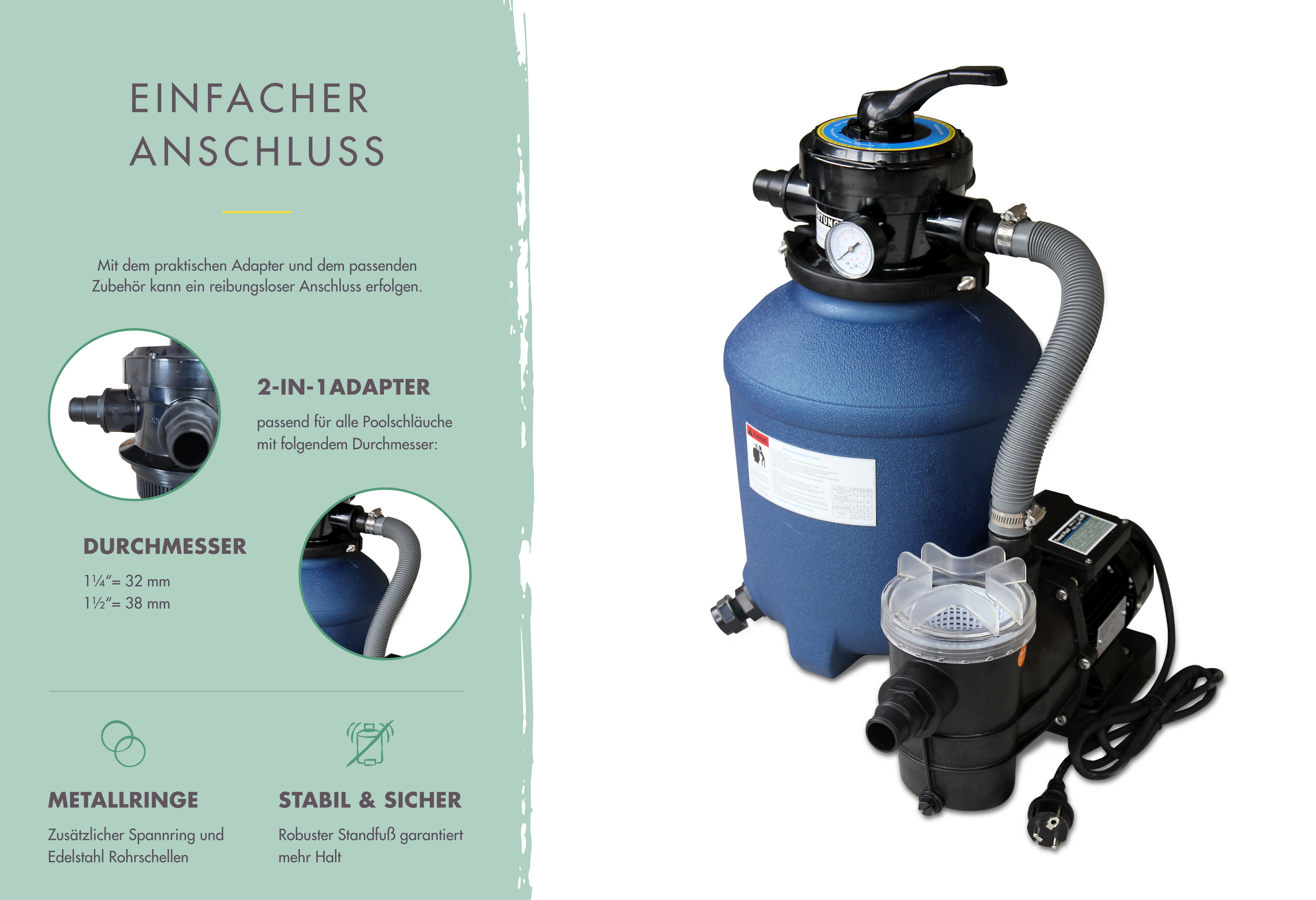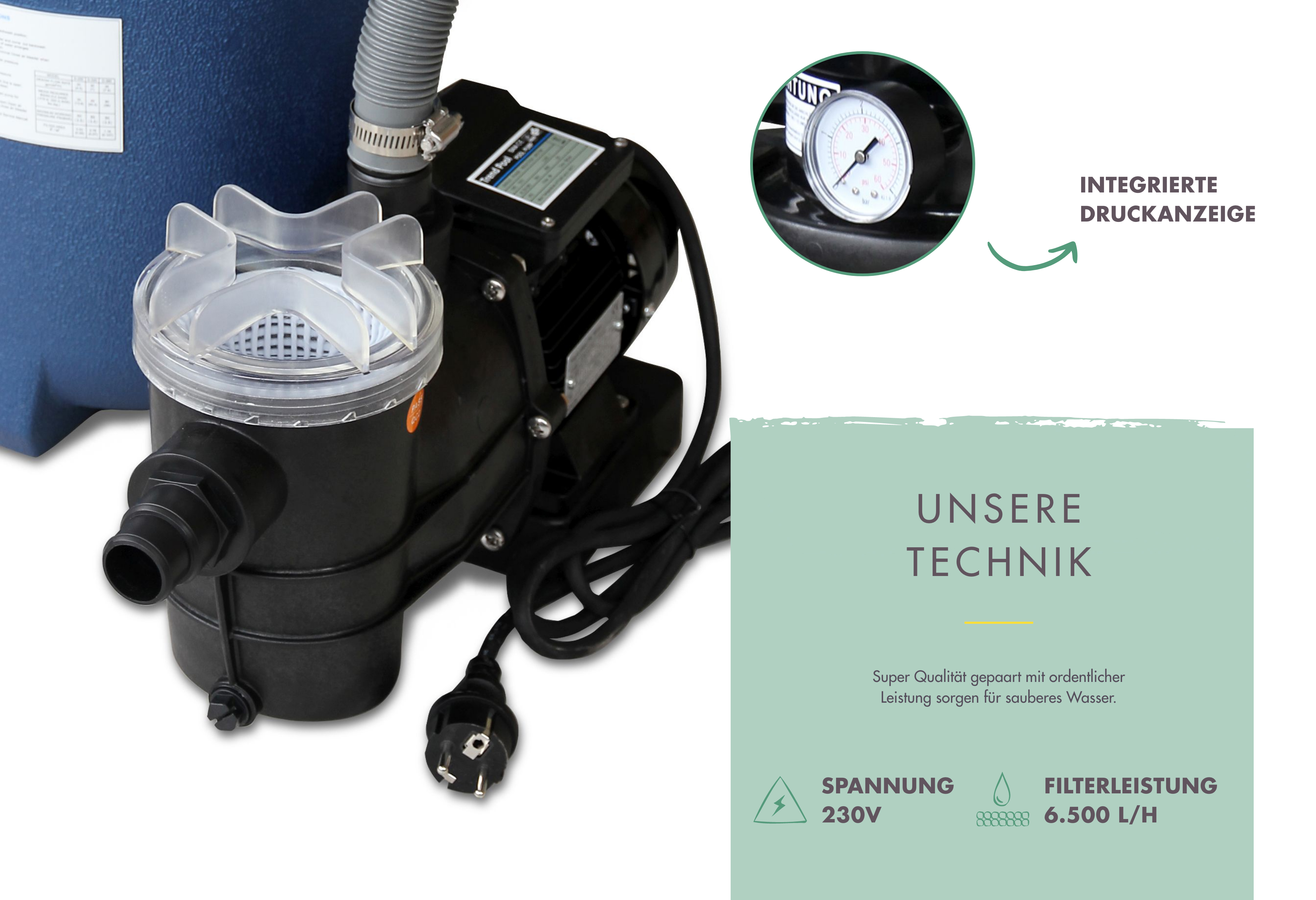 inkl. 25 kg Quarz Filtersand- Inkl. Pumpe (9m²/h) 230 V / Trafo und Kabel