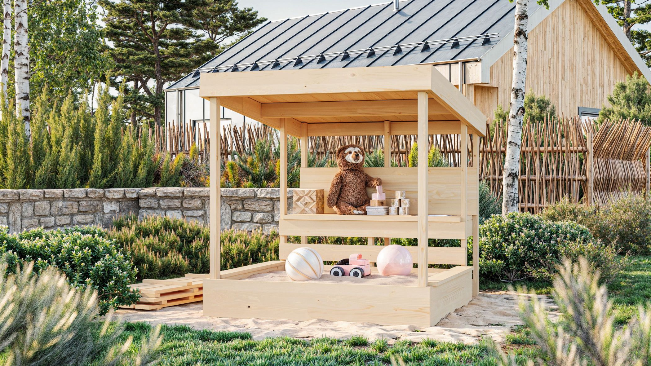 - Inkl. 3-teiliger Abdeckung für den Sandkasten
