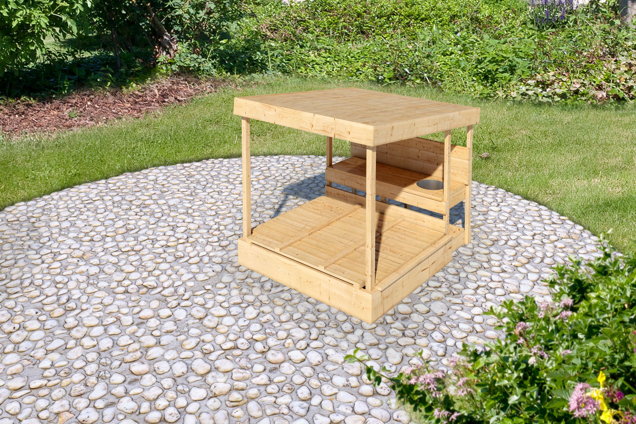 Sandkasten Max mit Dach und Matschküche