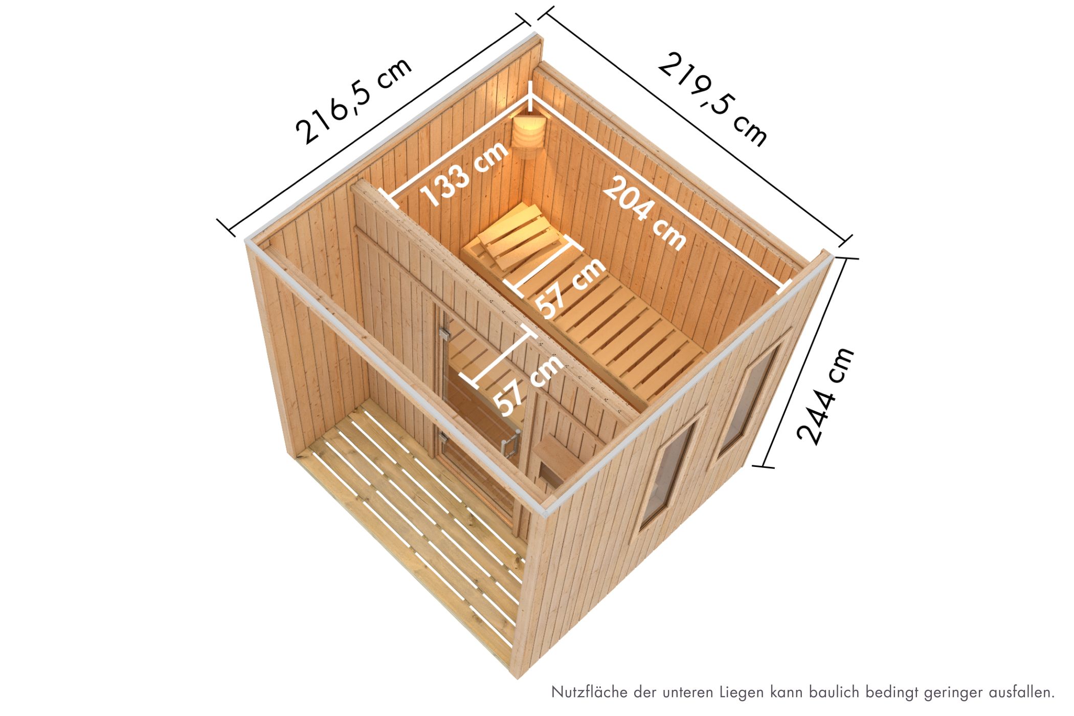 | Innenmaß Breite Sauna: | 204 cm |