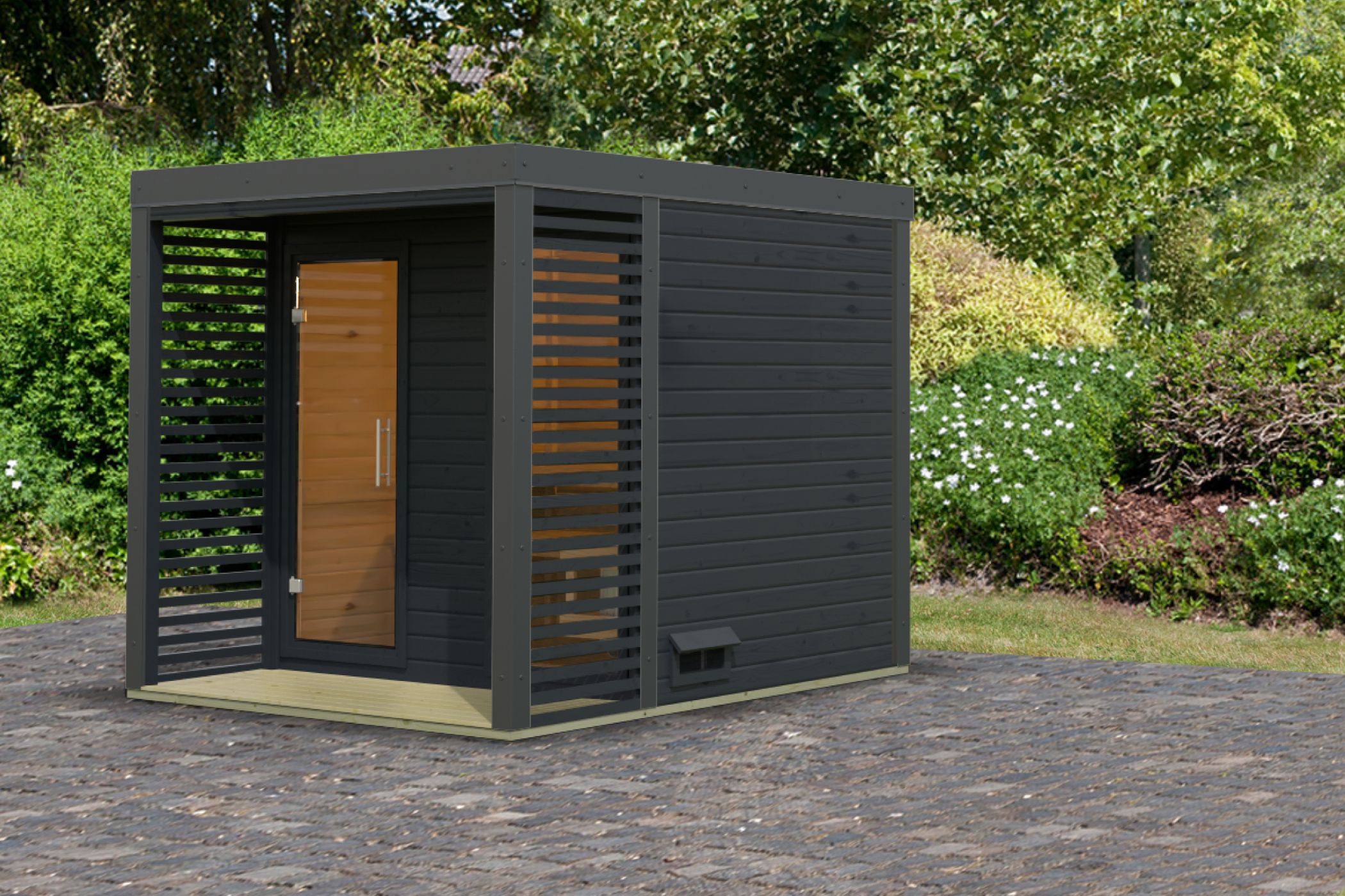 Karibu Gartensauna "Saunahaus Ares 2" 5 Personen Anthrazit ohne Ofen