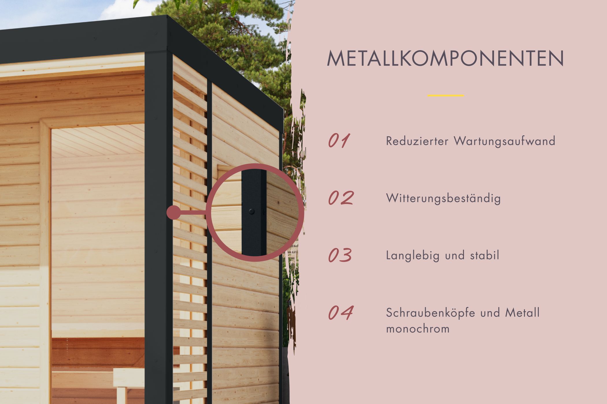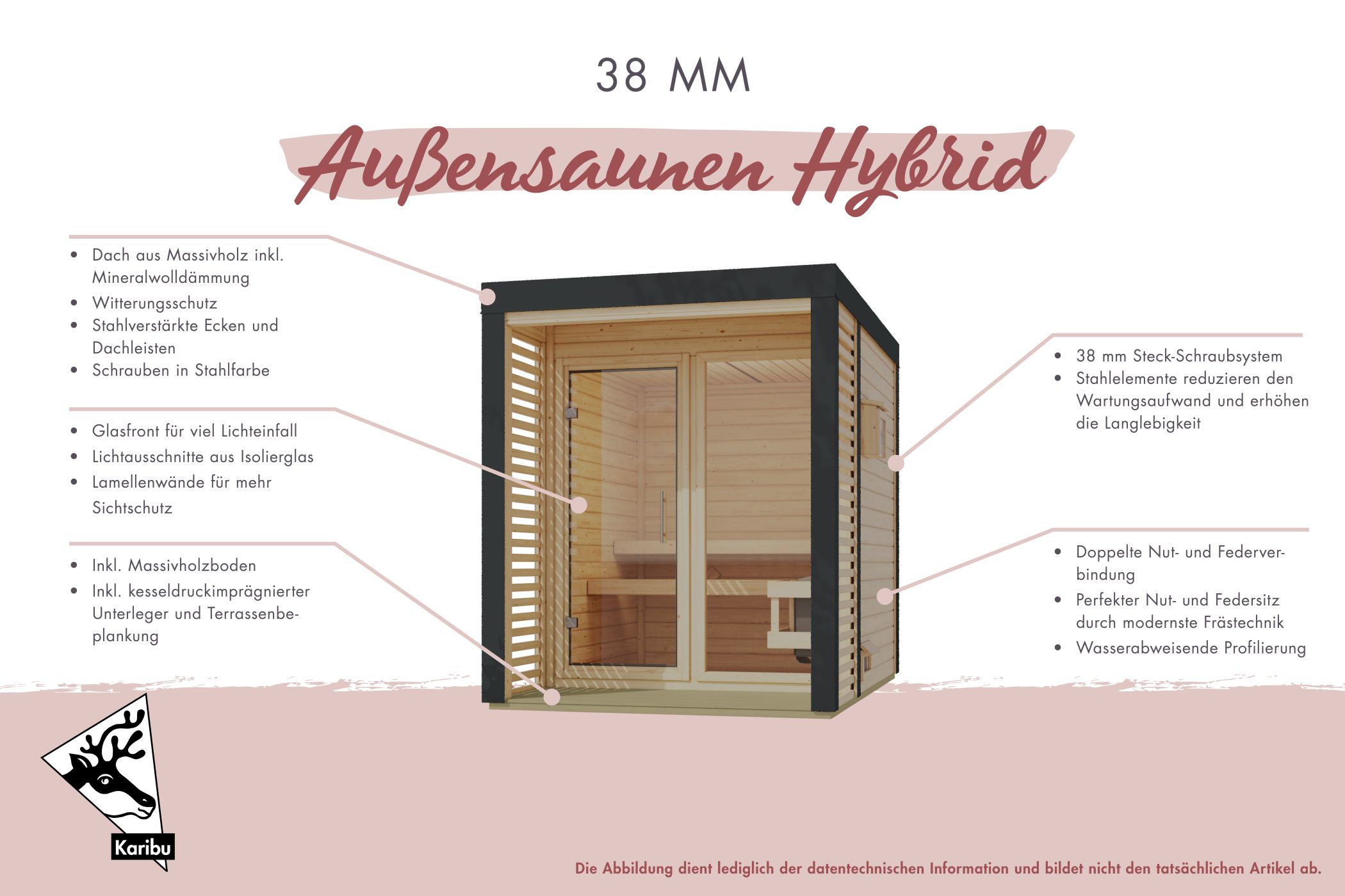 - Dach aus Massivholz inkl. Mineraldämmwolle