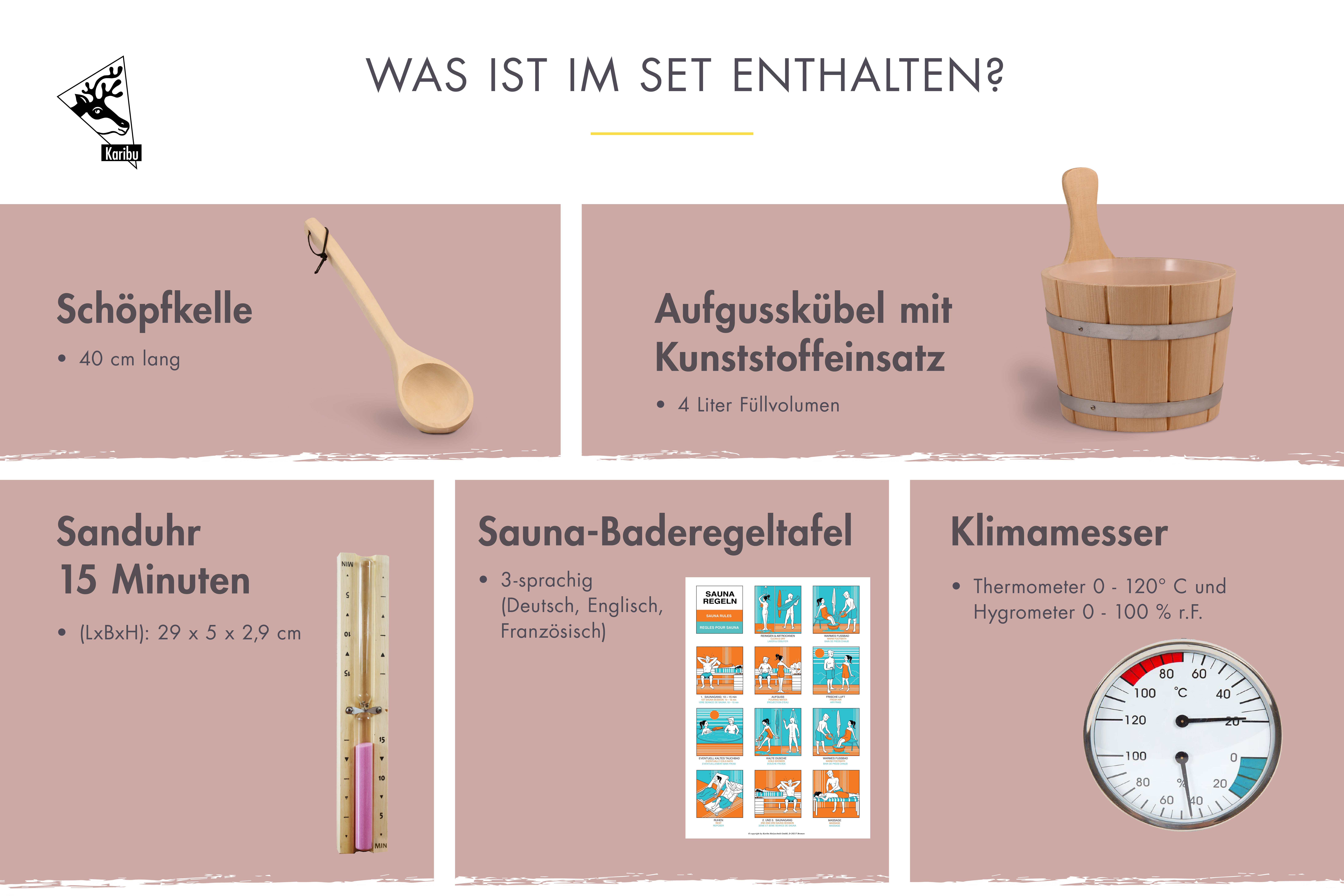 Saunazubehörset Zubehörpaket Classic 6 Teilig